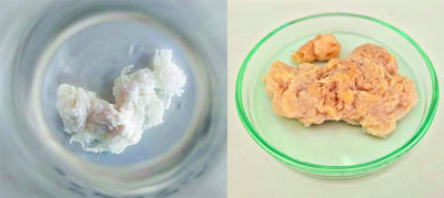 Суратларда икки хил рангдаги биополимер. Лекин бу бирикмани айни бир микроб ҳужайраси ҳосил қилган. Оппоқ рангдагисини микроб ҳужайраси «бахтли», «саодатли» онларида ҳосил қилган. Унда софлик, поклик, аллақандай гўзалликни ҳис қиласиз.